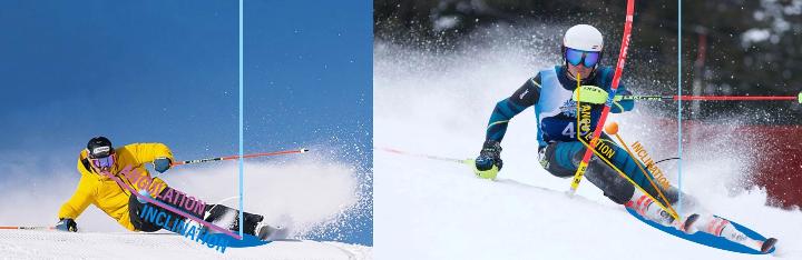 Pour cela, il faut incliner le tibia de la jambe intérieure au virage vers l’intérieur du virage, parallèlement à la jambe d’appui, qui reste toujours la jambe extérieure au virage. Ainsi, le ski intérieur va lui aussi « mordre » la neige et accompagner le mouvement pour plus d’efficacité. En revanche, pour conserver son équilibre, il va falloir compenser cette prise d’angle des membres inférieurs, en conservant le buste droit, perpendiculaire au sol et en écartant légèrement les bras pour plus de stabilité. Seules les jambes prennent de l’angle (c’est ce que l’on appelle l’angulation). Attention à ne pas basculer sur l’intérieur avec l'épaule car c’est la chute assurée.